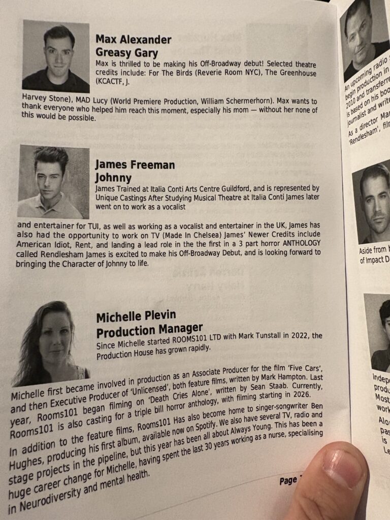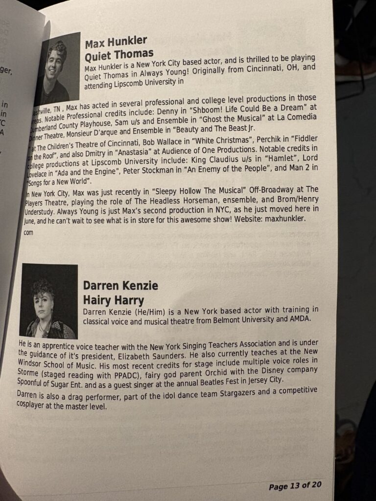 Then the show transforms. Suddenly, the year is 1989, the audience is introduced to the rest of the character — all school students with Haywire. Little Short Sally (Eleanna Fin) is the smallest in the class. Joe Smiley (Tony Azzaro) who doesn’t know how to drop his grin. Tiffany Olsen (Lexi Rosenblum), an American who is desperate to have a new life in England. Moel (Zach Liddick) with a brilliant imagination. Celia Bott (Marion Avila) a foster child. No-Name Jones (Lily Aman) called that because their parents never settled on a name, leaving the character to suffer without an identity. Quiet Thomas (Max Hunkler) who is a traditional, rebellious teen, with an understanding of how powerful silence can be. Hairy Harry (Darren Kenzie) who was given this nickname due to his hair. Greasy Gary (Max Alexander) a child who has a reputation for being smelly, unkempt, even gross. Lastly, there’s Johnny (James Freeman) who lacks a concrete identity, feels he is never good enough, and always aims to be someone else — anyone else — who may be deemed as cool.