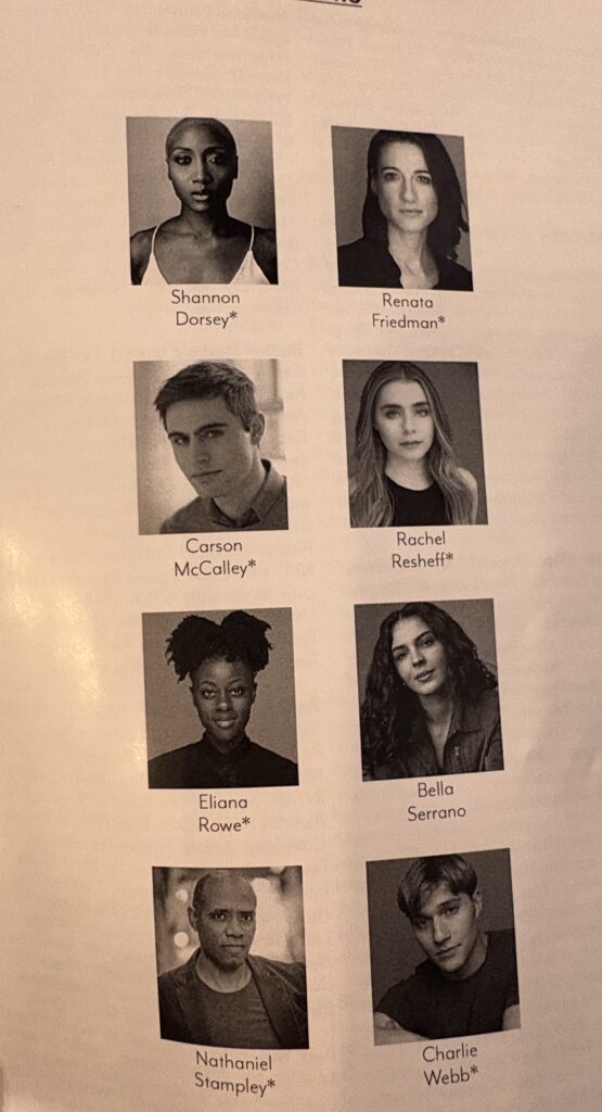 Most of the time, the distinction between each character an actor played was clear, but not always. When an actor begins reporting on breaking news, it is clear that is a reporter. When an actor is portraying a lawyer as well as one of the people questioned by another lawyer, that clarity becomes less defined. I found the clarity to halt altogether with the characters of Ms. Moore and Karina — nether of who I remember as distinct characters.